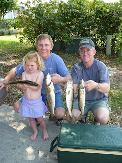 Randy, Reed, Cassidy and I spent a very enjoyable afternoon in the canoe paddling and fishing around Terra Ceia Bay. The kids were the only ones to catch fish. Cassidy and the Scooby Doo pole conquered many a pinfish and Reed fought and caught 2 rather large hard head catfish with his weenie 4-lb test. I scored a big zero on the fish front, as did the husband, but we did do all the paddling. To my credit, I only asked once how much a 4 horse power engine would cost! Also to my credit, Reed, Cassidy and I came away from the afternoon SUNBURN FREE. One person is not on that list because he was responsible for sunscreening his own knees...'nough said.